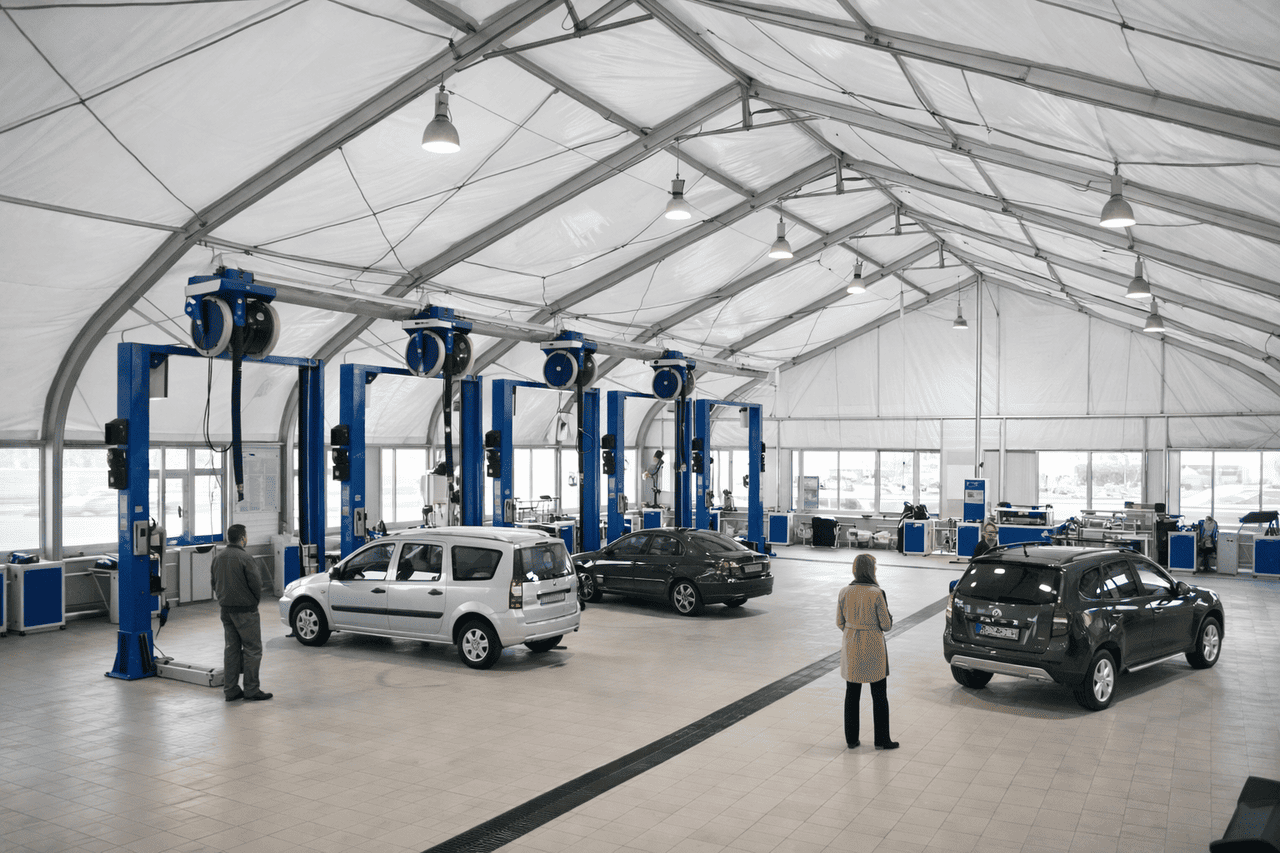 Auto service hangars from LUXTENT are designed to boost shop efficiency and solve day-to-day operational challenges, combining versatility with long-term reliability.